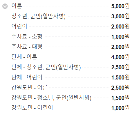 입장료는 다음과 같습니다.