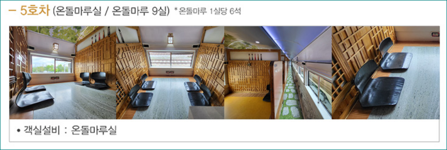 그리고 인기가 많아 항상 거의 매진되는 온돌마루실은 5호차네요.