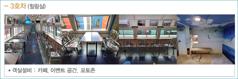 3호차는 힐링실인데, 기차 안 카페테리아라고 생각하시면 될 것 같습니다.