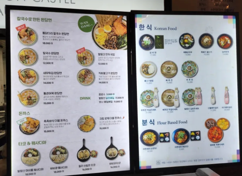 한식, 분식, 돈까스, 타코 등등 메뉴는 정말 많아요.