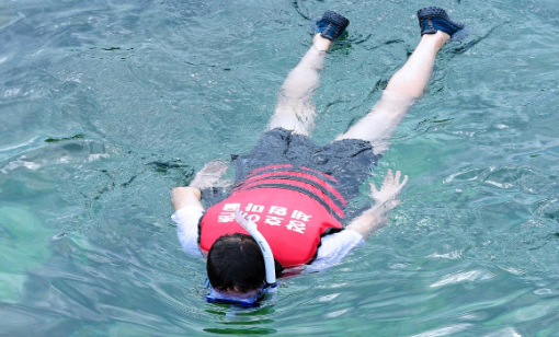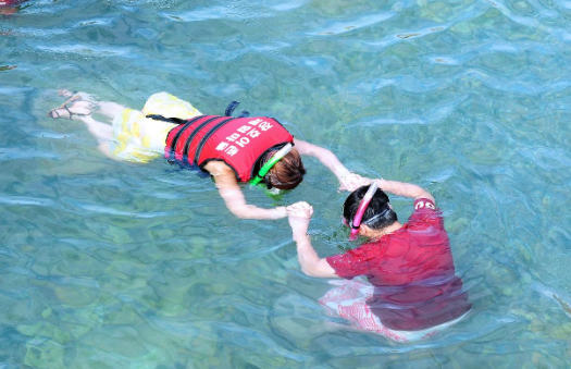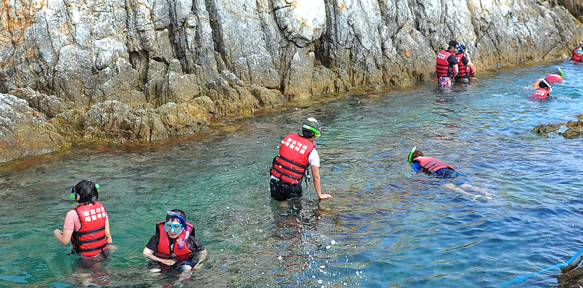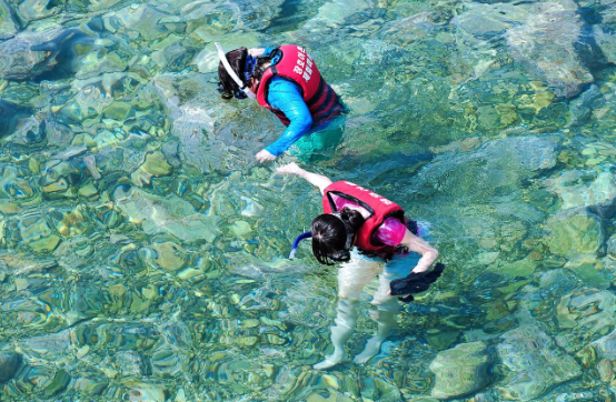 고글, 안전조끼를 입고 바다속을 직접 눈으로 관찰해볼 수 있는 체험입니다.