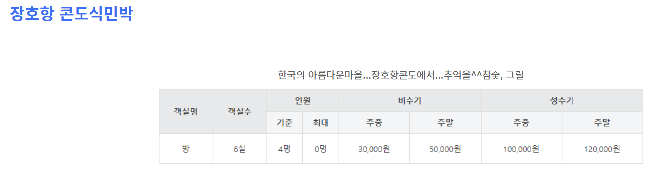 장호어촌체험마을 숙박예약