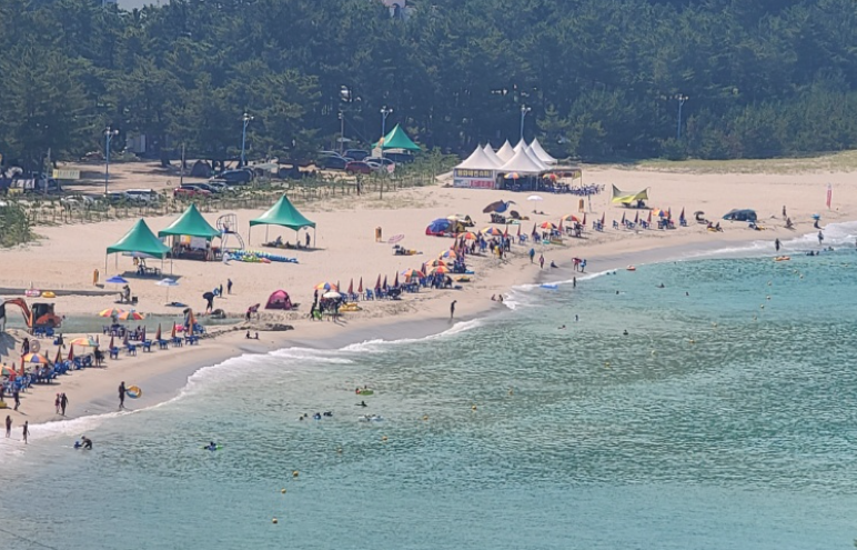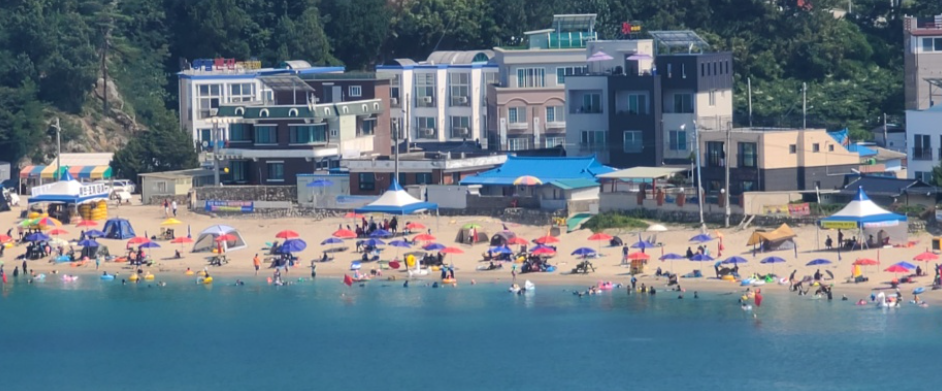 장호체험마을과 방파제 하나를 사이에 둔 용화 해수욕장입니다.