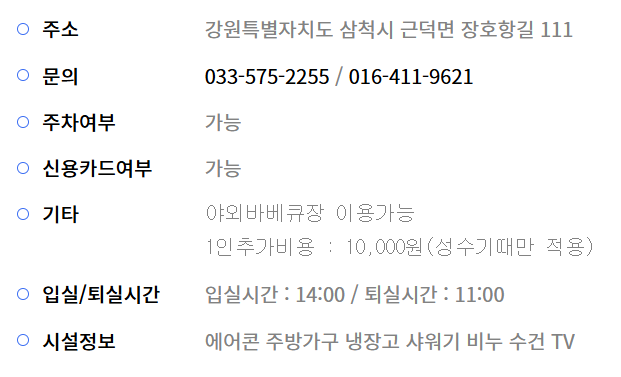연락처나 바베큐 이용, 시간 등등 전부 꼼꼼하게 확인해보실 수 있습니다.