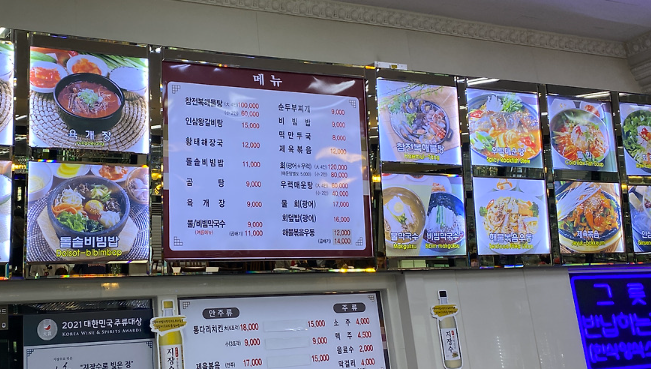 아무래도 바다주변이다보니깐 횟집이 많은데 감자탕, 문어막국수(?)집도 있어요.