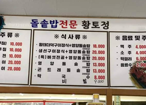 특징: 돌솥밥 전문점으로, 한식 위주의 메뉴를 제공합니다. 건강한 식사를 원하시는 분들에게 적합합니다.