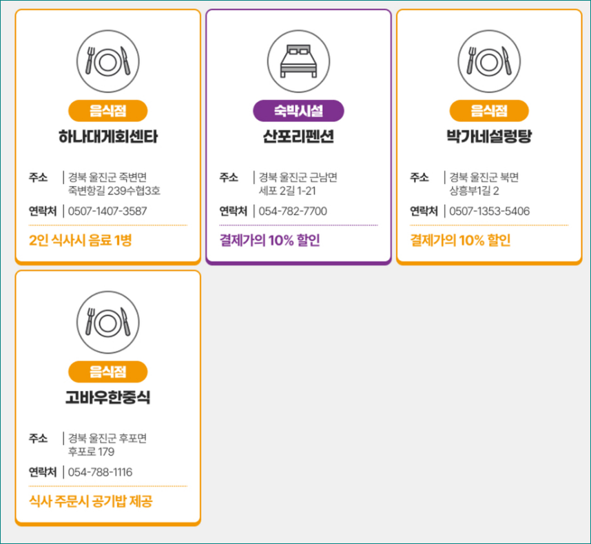 그리고 추가적으로 울진 가맹점 할인도 된다고 하니깐 사전 예약하고 가시는 것을 추천!
