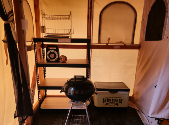 BBQ 그릴 1개, 아이스 박스 1개, 멀티탭 릴선 1개, 유선 램프 1개, 에어매트 1개, 온수 매트 1개