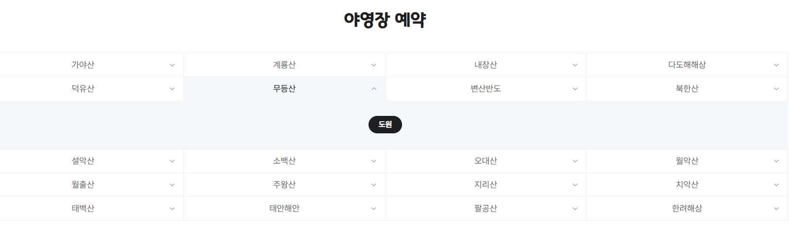 1. 야영장 예약탭에서 무등산 '도원'을 선택합니다.