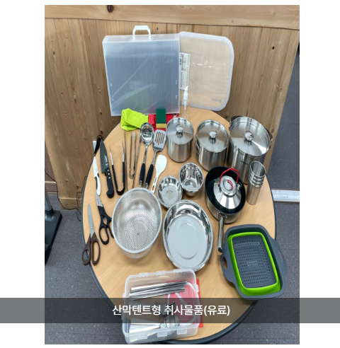 참고로 취사도구는 대여비용 10,000원 있습니다.