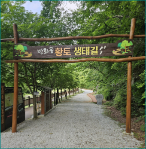 방화동 자연휴양림을 지나다보면 황토 산책로가 있습니다. 약 800m정도의 황토길이 있어서 체험해보실 수 있어요