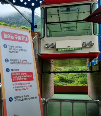 그리고 왕복권 구매 후 등산하시는 분들은 등산 마치신 후에 상부 탑승장에 늦어도 오후 5시 30분까지는 오셔서 대기해주셔야 합니다. 그래야 마지막 하행 케이블카를 타실 수 있어요.