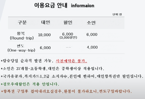왕복(대인할인) - 6,000원