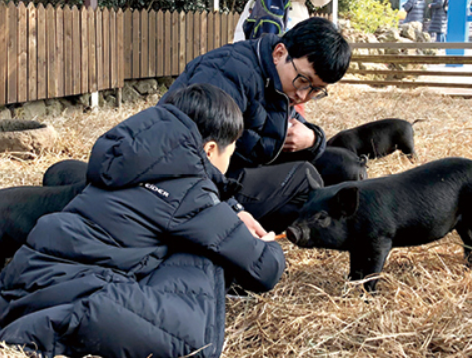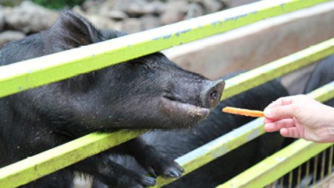 제주의 대표 먹거리인 흑돼지를 직접 만져보고, 먹이주기 체험을 해볼 수 있습니다. 먹이는 현장에서 구매 가능합니다. (당근)