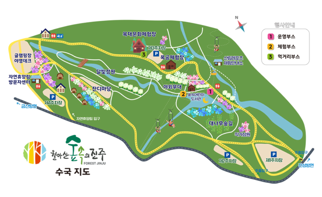월아산 숙속의 진주 지도, 주차장
