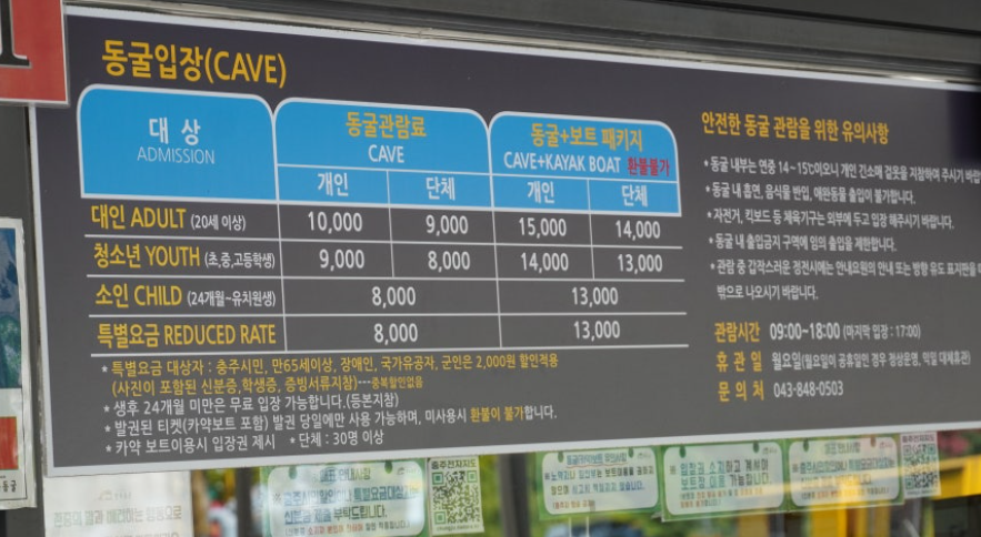 동굴만 관람하실꺼면 1인 10,000원 정도이고