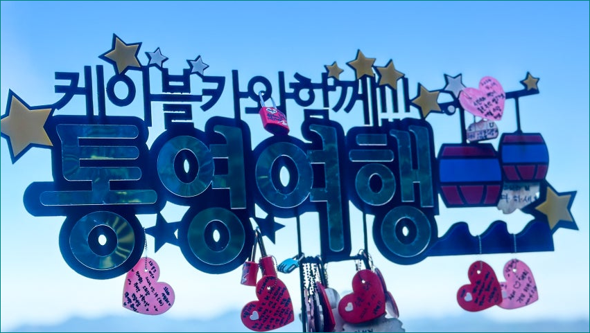 통영 케이블카는 한려수도의 아름다운 경관을 한눈에 감상할 수 있는 멋진 관광 명소에요.