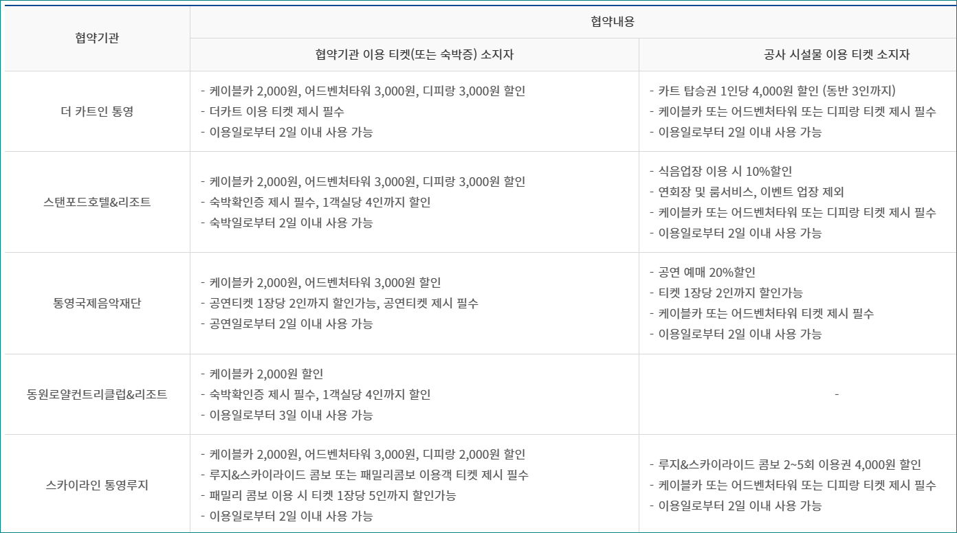 - 케이블카와 통영어드벤처타워 연계할인도 가능합니다. (3,000원 할인)