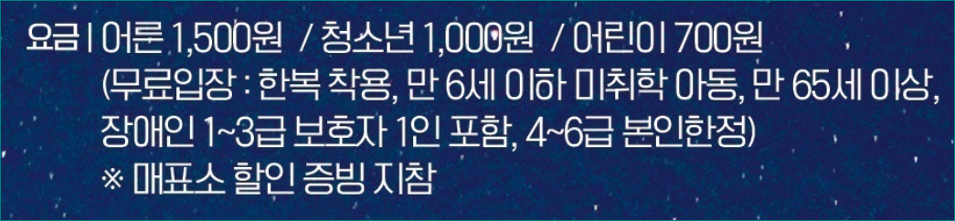 입장료: 어른 1,500원 / 청소년 1,000원 / 어린이 700원 (싸다..)