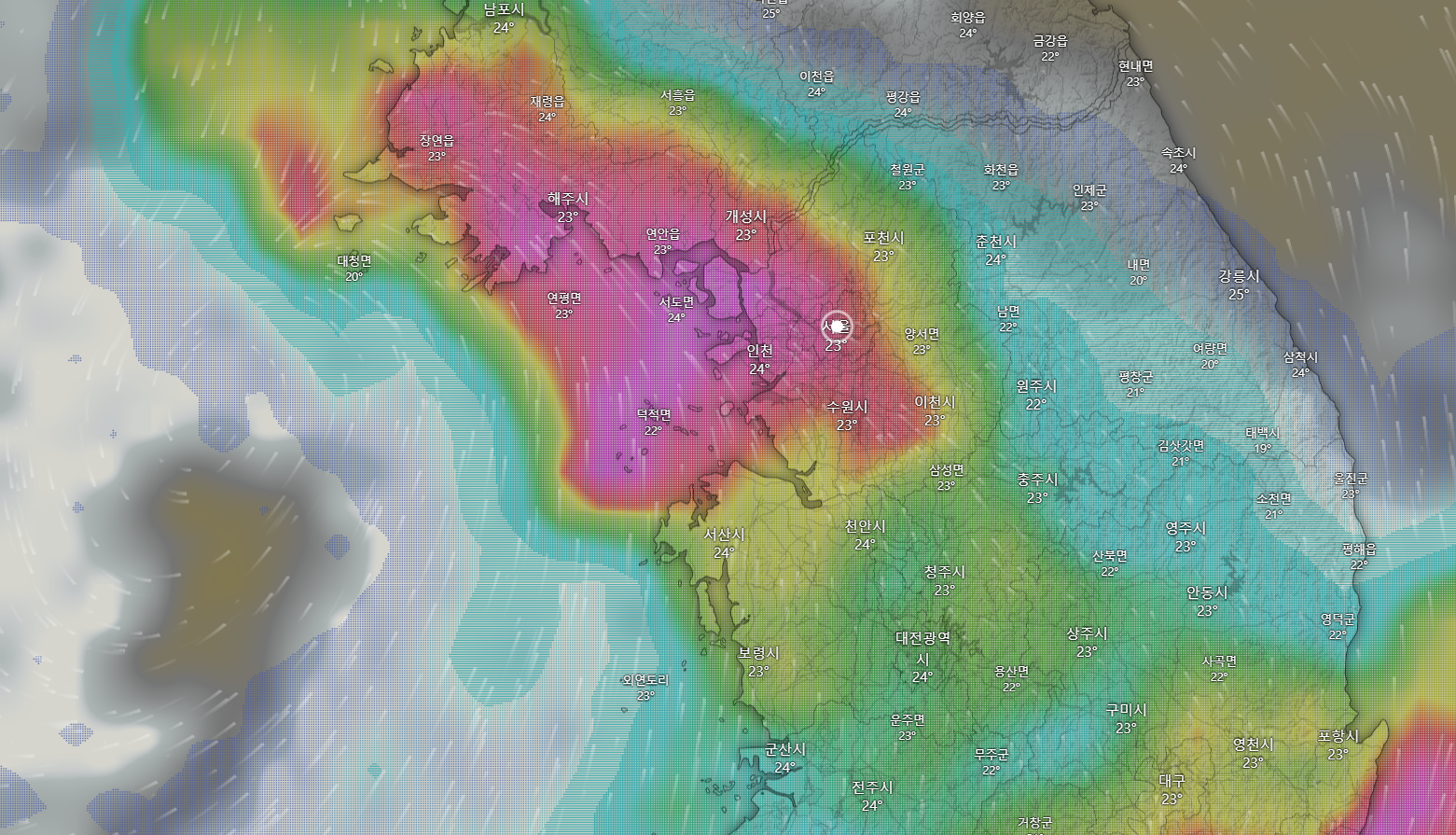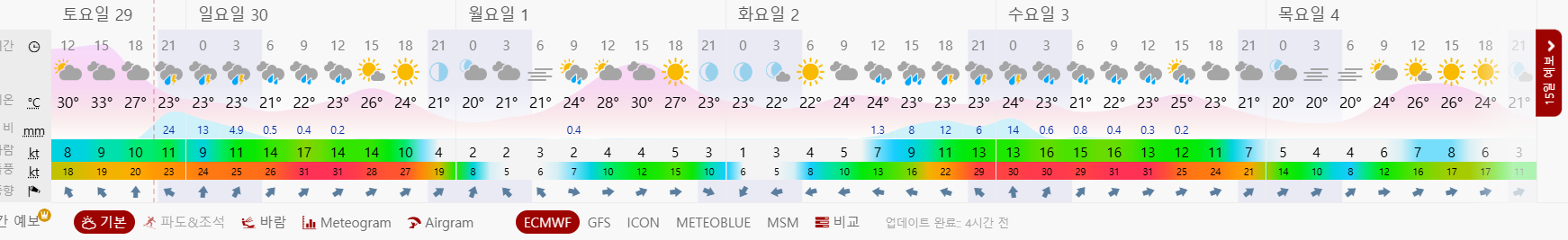 현재 구름의 현황, 바람의 이동량, 날씨 레이더, 뇌우, 누적 강수량등등 모든 정보를 볼 수 있는 곳입니다.