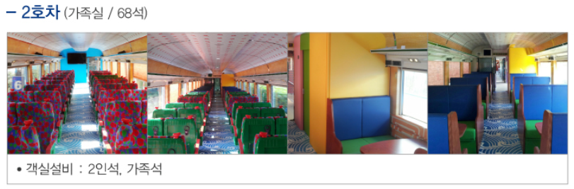 아름다운 남해안 풍경을 감상할 수 있는 최고의 기차여행 경험을 제공하고 있습니다. 아래 사진이 열차, 내부입니다.