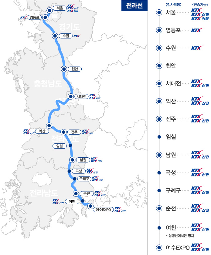 전라선 구간: 서울 - 역수엑스포역